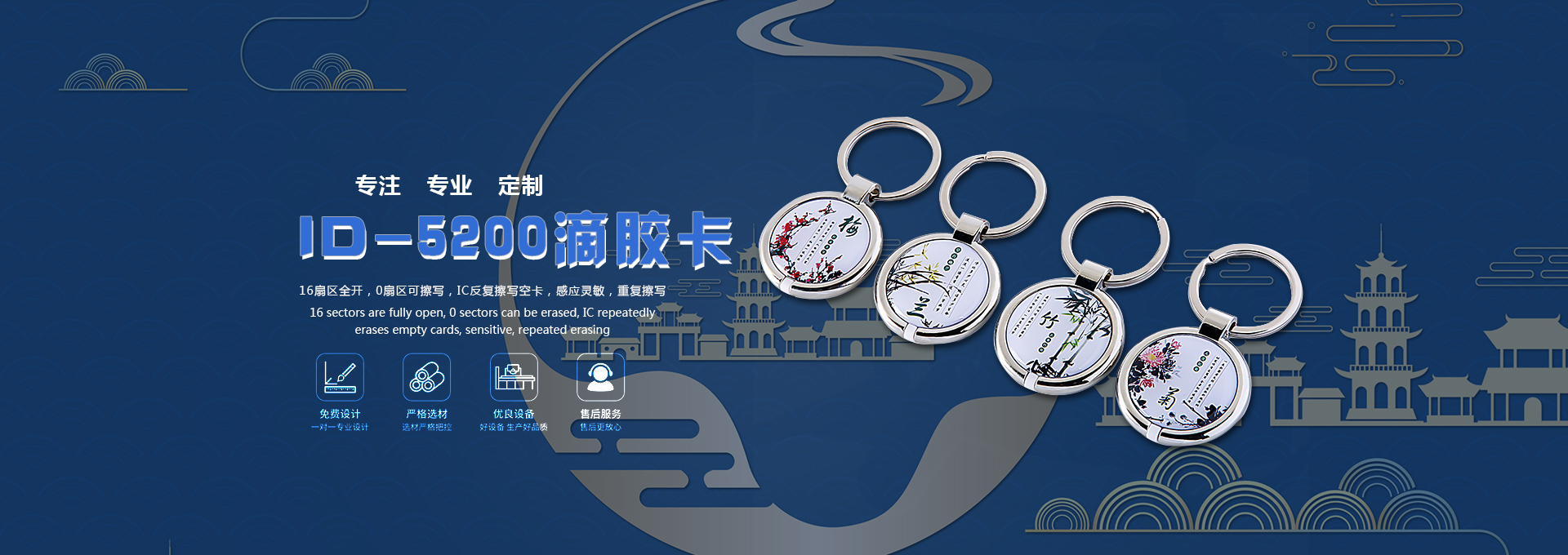 質量過硬、科技創新。公司為保證產品的質量,我們在制造工藝上不斷創新,公司目前采用是行業上靠前的全自動上線機,全自動碰焊機,與傳統的人力繞線與手工焊接技術相比,頻率更精確,質量更穩定,讀卡距離與平整度都很大的提升。完備的無塵生產車間,全新的德國海德堡四色印刷機,先進的層壓機,從而保障印
